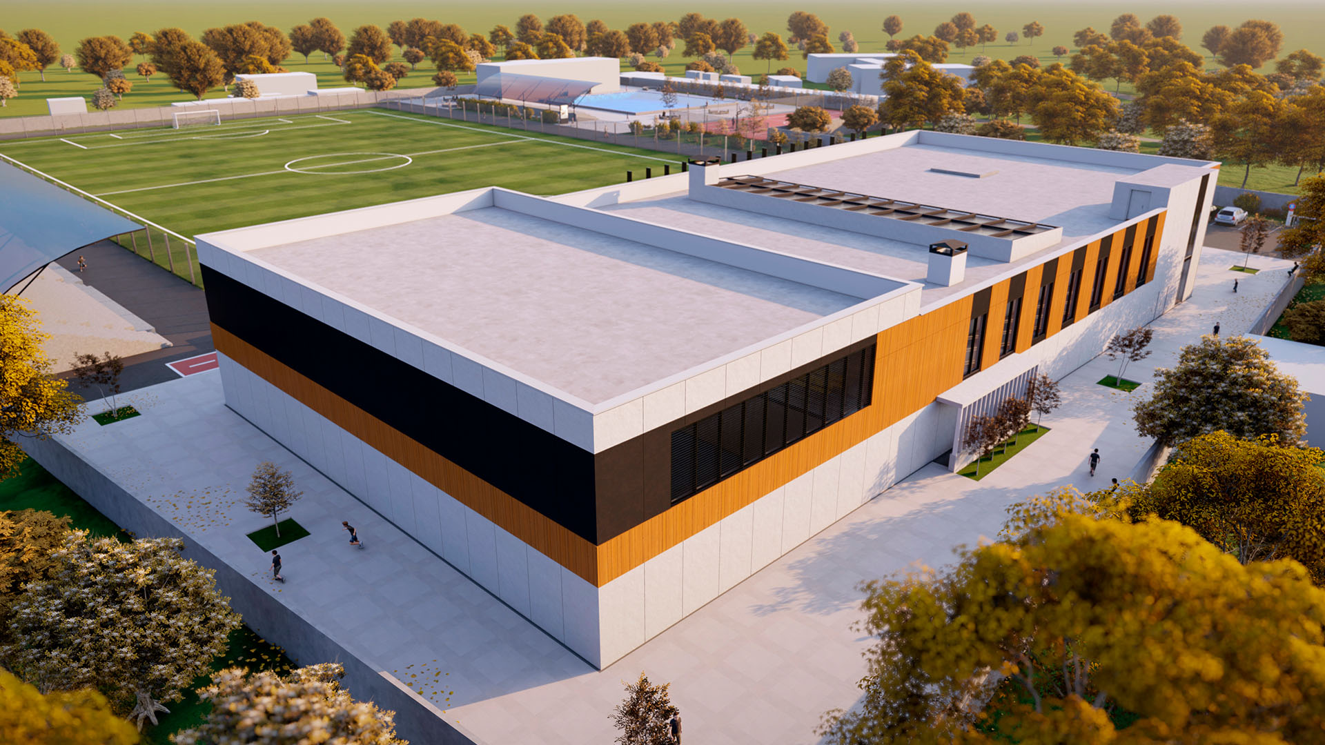 The building’s faсade solutions reflect a commitment to modern architecture and design trends. The reconstruction’s goal is not only to restore the school building to better functioning conditions, but also to provide a new source of social interest in the region. The children’s and youth sports school is intended to be a multifunctional sports facility, not merely an educational institution.